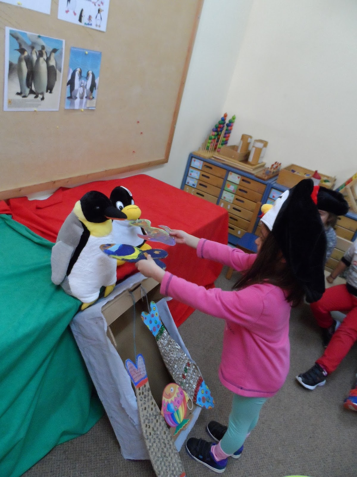 Φτιάξαμε σχετικό ταμπλό, μοιραστήκαμε στη παρεούλα τις γνώσεις μας για τους πιγκουίνους, περπατήσαμε και φωνάξαμε σαν πιγκουίνοι, παρακολουθήσαμε τις περιπέτειες του pingu, ζωγραφίσαμε, παίξαμε παιχνίδια ρόλων...